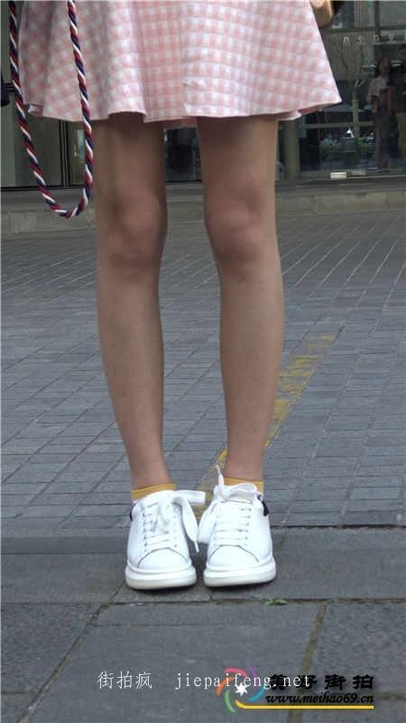 4K-街拍粉色格子连衣短裙长腿清纯漂亮美女[MP4/777M]