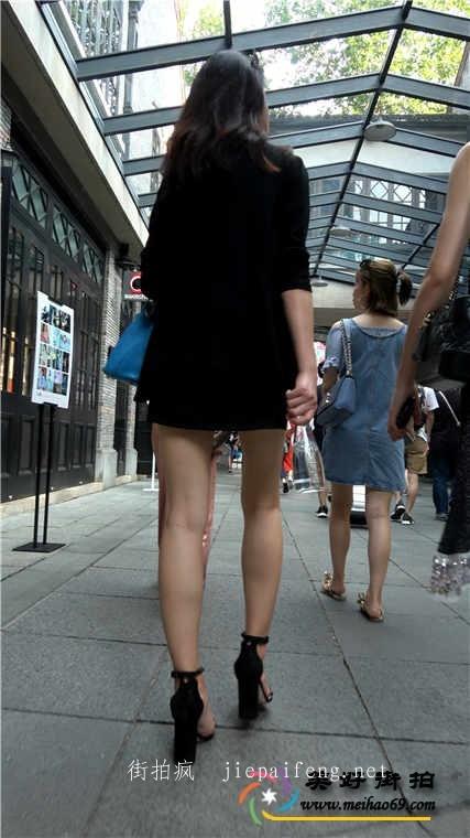 4K-街拍黑色连衣包臀短裙高跟美腿性感美女[MP4/1.1G]