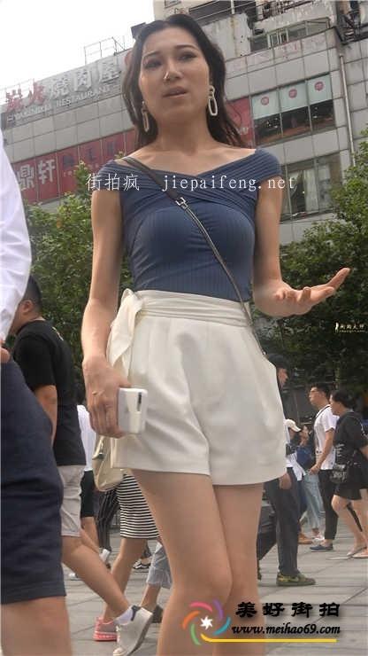 4K-街拍性感休闲白短裤长腿高跟美女[MP4/1.5G]