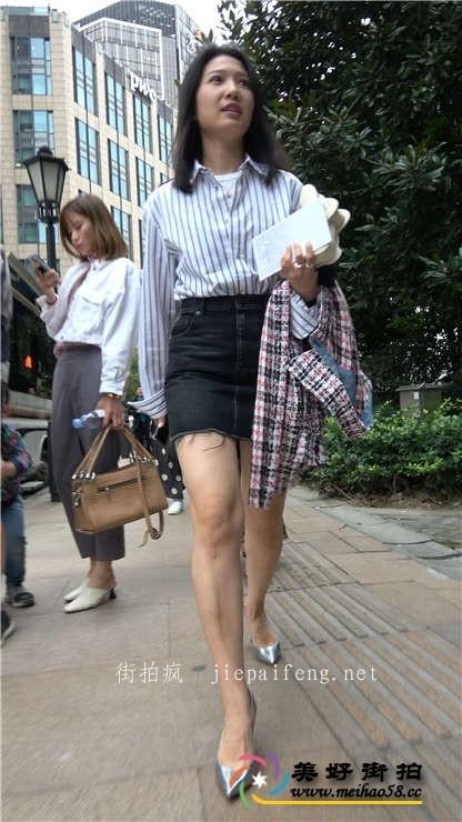 4K-街拍牛仔包臀短裙银色高跟极品白腿丰臀OL美女[MP4/1.23G]