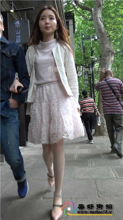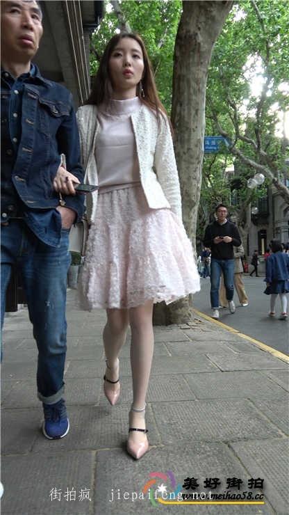 4K-街拍粉色连衣公主裙高跟丝袜清纯美美少妇[MP4/1.02G]