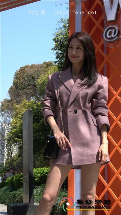 4K-紫色休闲短裤性感长腿高跟肉丝美女街头拍照[MP4/993M]4