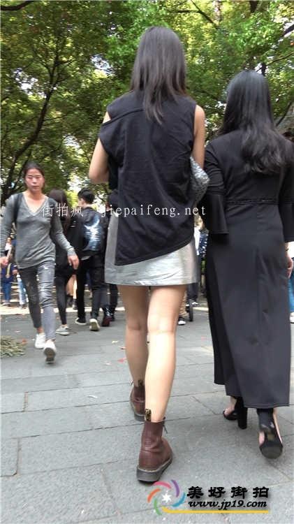4K-街头拍照的银色包臀皮裙丝袜美腿美女[MP4/1.81G]