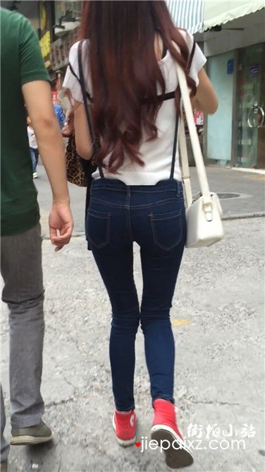 街拍超紧蓝色牛仔裤大长腿女神姐姐