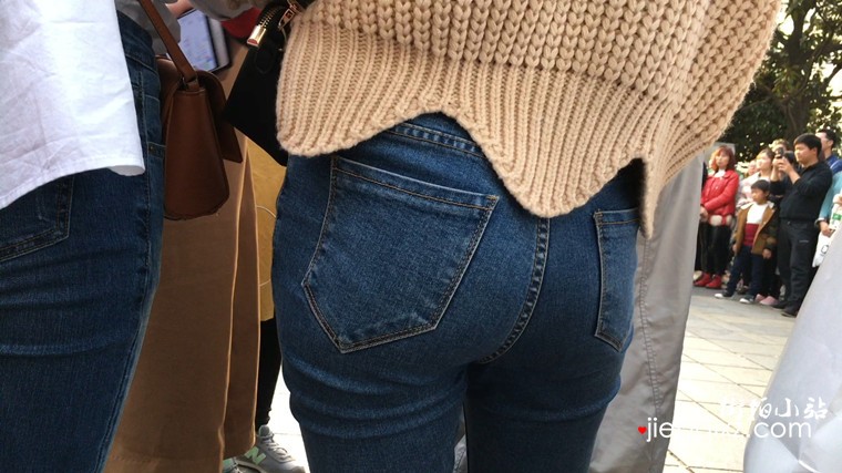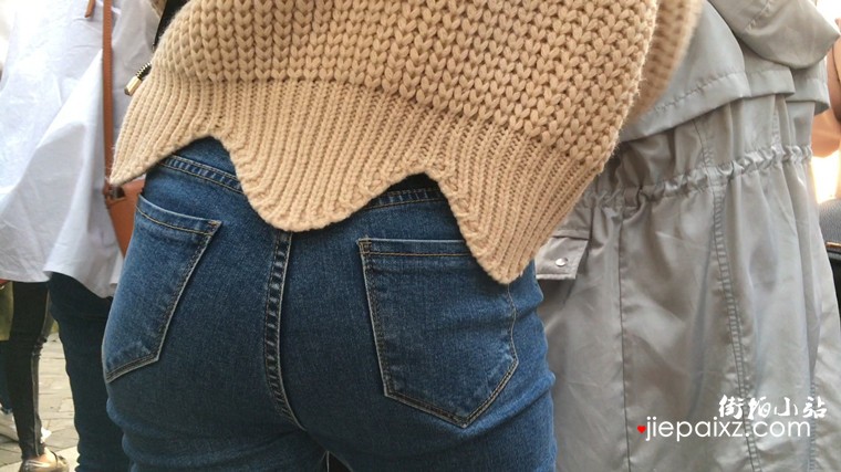 局部特写紧身蓝牛少女的美臀,想摸一把的冲动