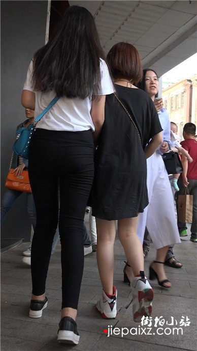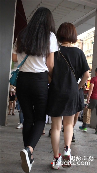 紧身黑裤苹果臀美眉跟闺蜜逛街