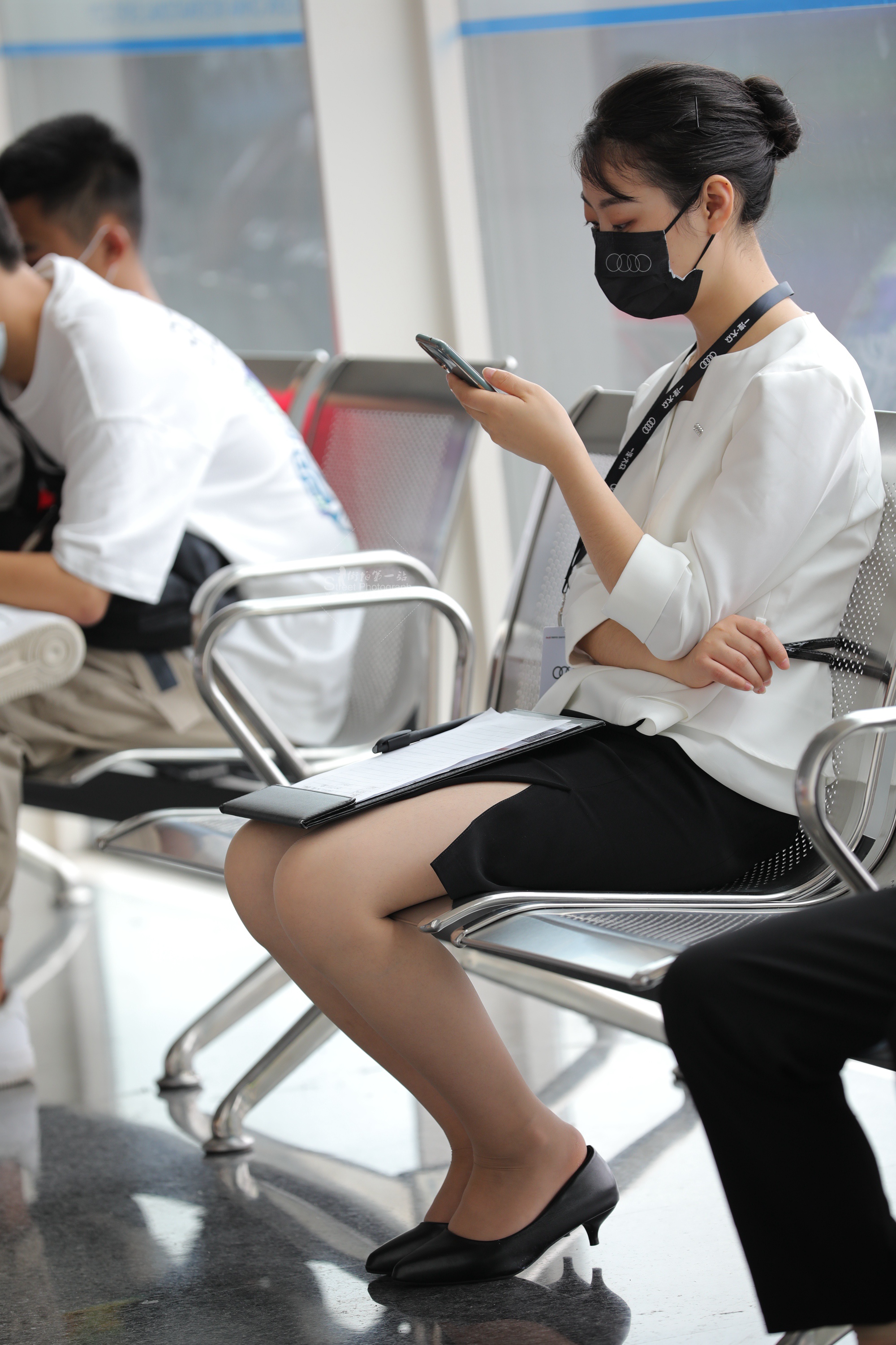 车展礼仪黑 丝高 跟站累喜欢脱鞋