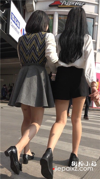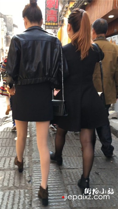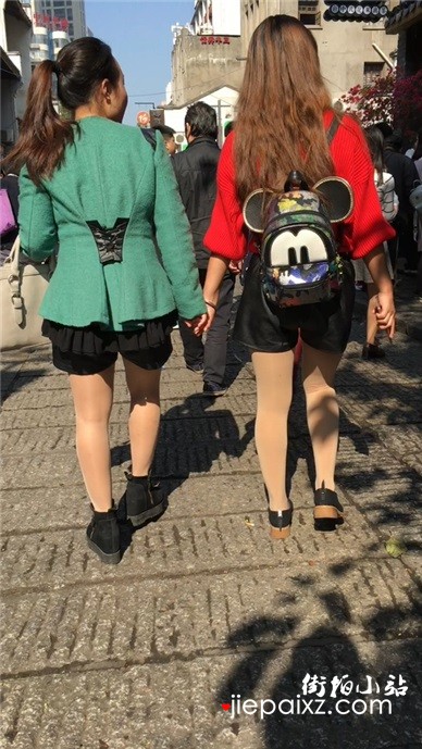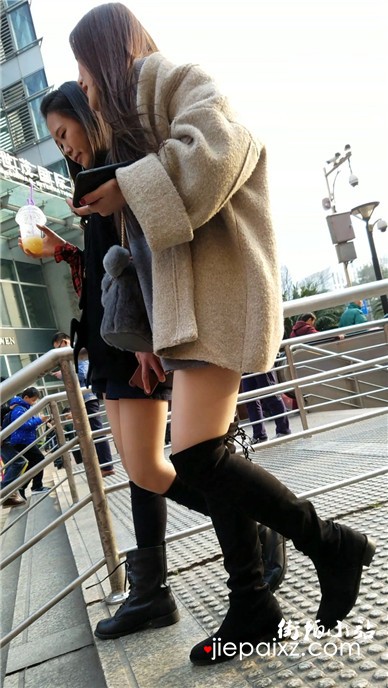 街拍白皙美腿长筒靴俩颜值美女姐姐