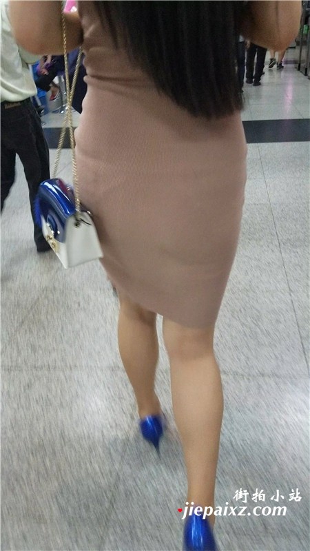 地铁上的条纹连衣裙高跟鞋街拍少妇