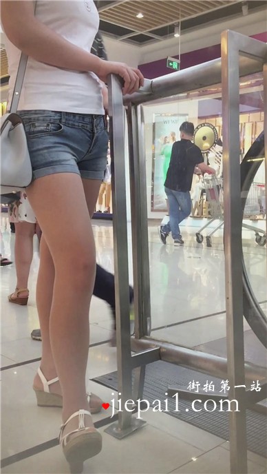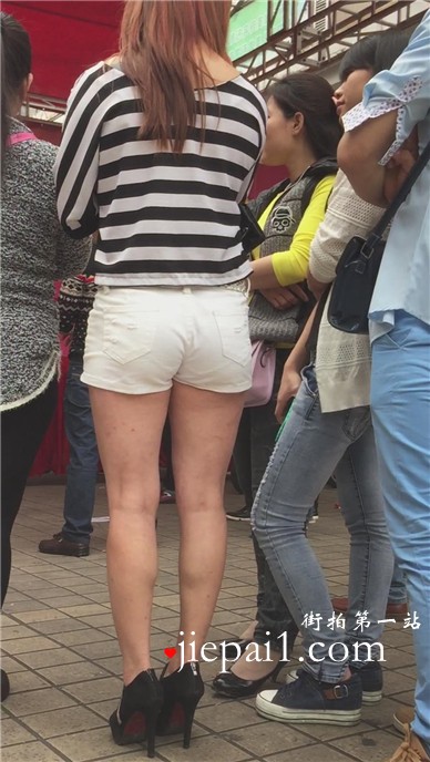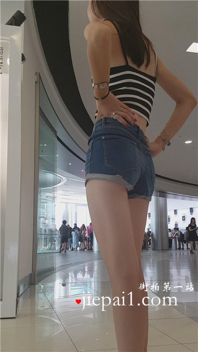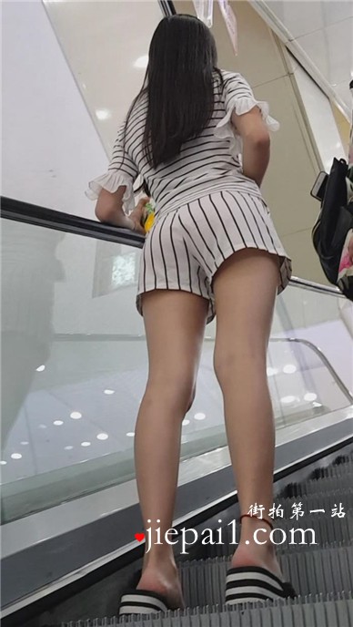 商场拍摄的条纹热裤长腿美女。
