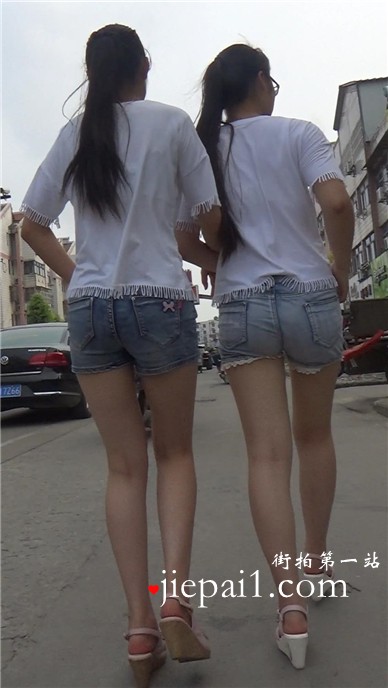 跟好姐妹逛街的白热裤小清新少女