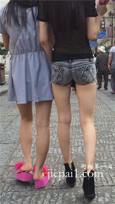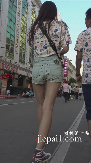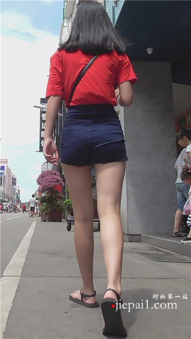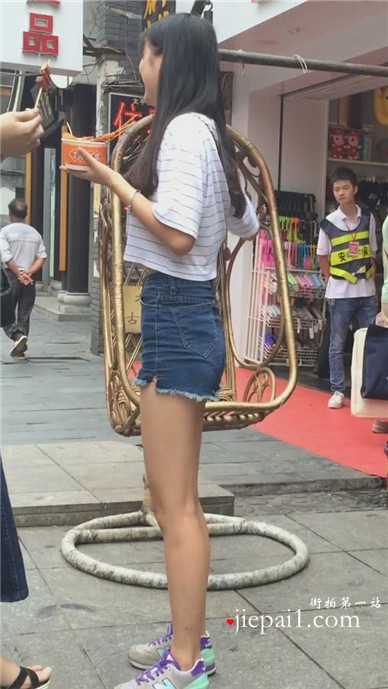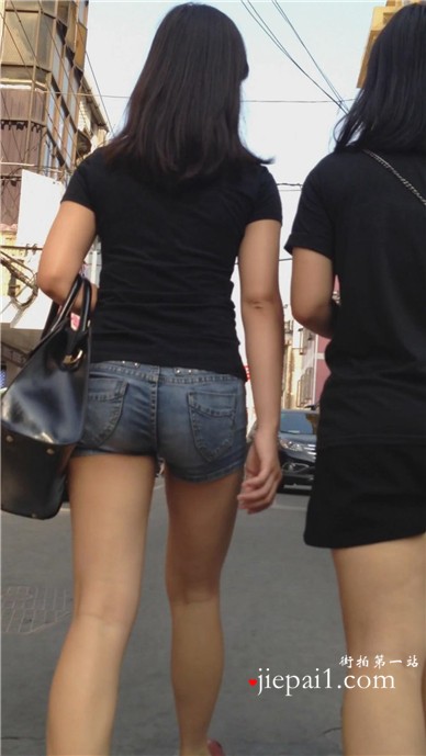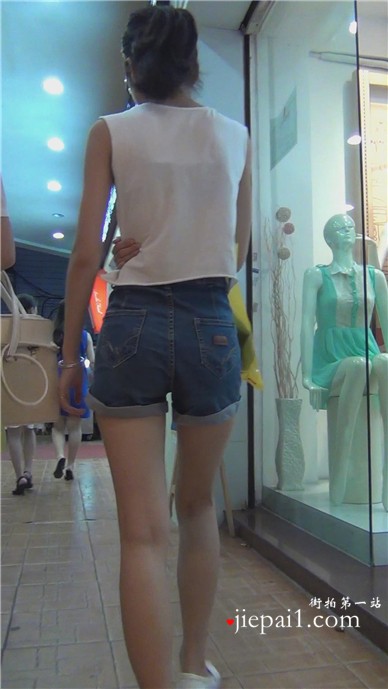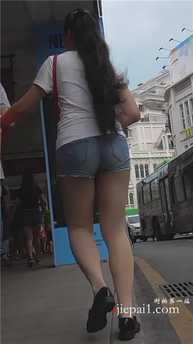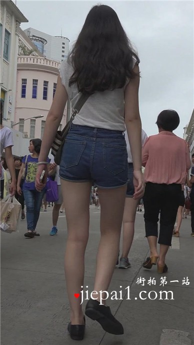 逛街偶遇美图牛仔热裤青春靓丽美眉