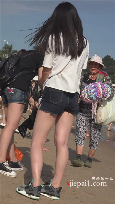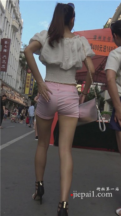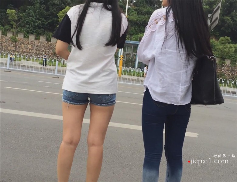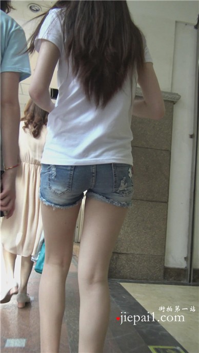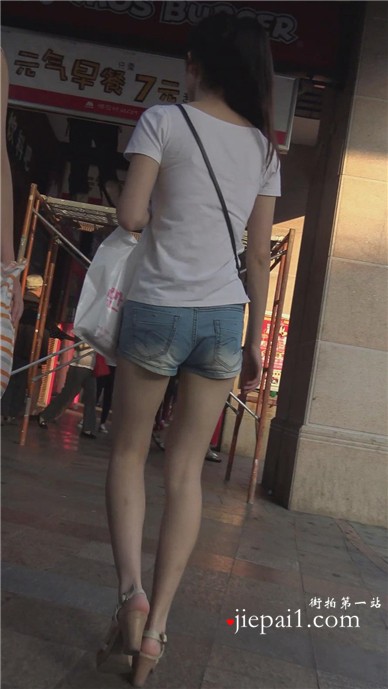 街拍高腰牛仔热裤美臀白T恤女孩!