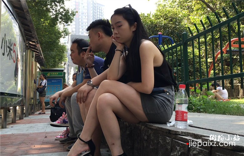 街拍热裤丰满小妹在等公交车