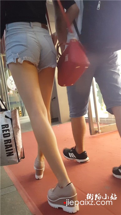 街拍热裤白皙大腿饱满圆臀妹子