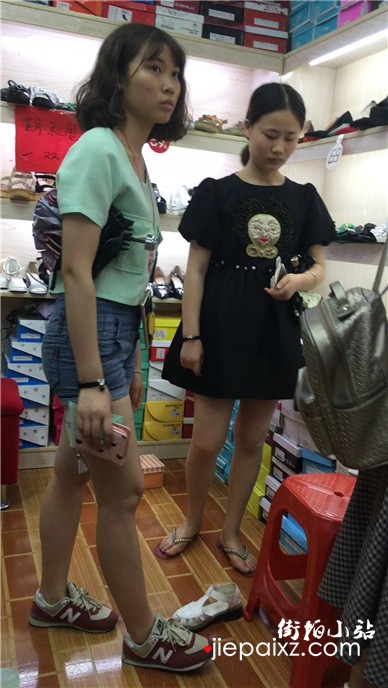 热裤妹子跟姐妹鞋店试鞋子