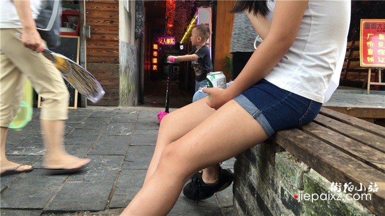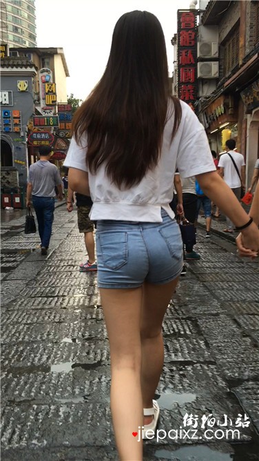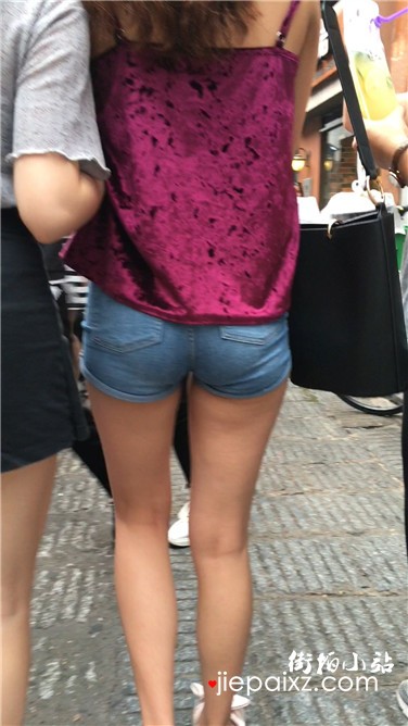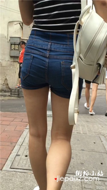 跟拍超短牛仔热裤白皙大腿圆臀美眉