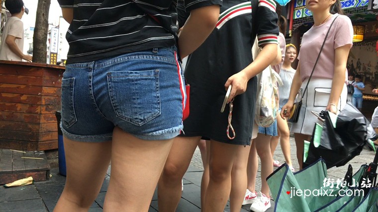超短牛仔热裤性感饱满小臀妹子