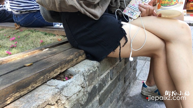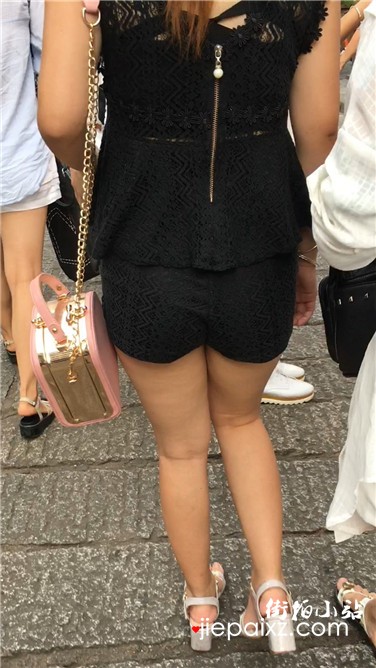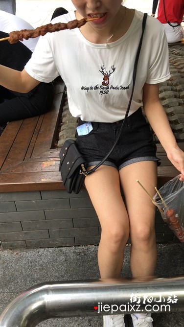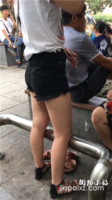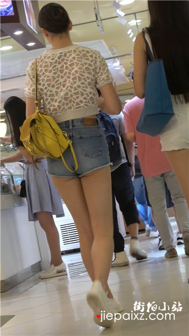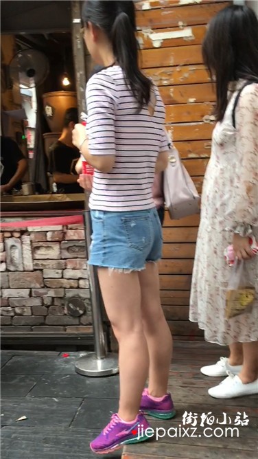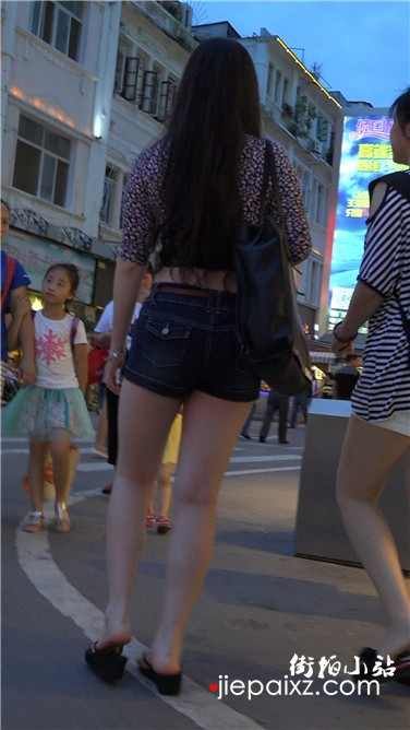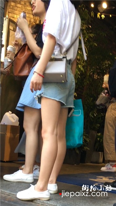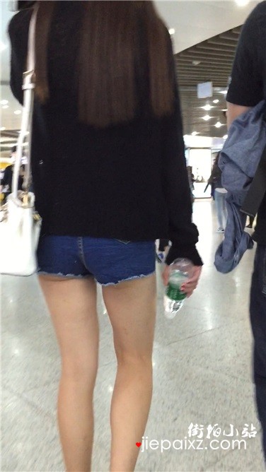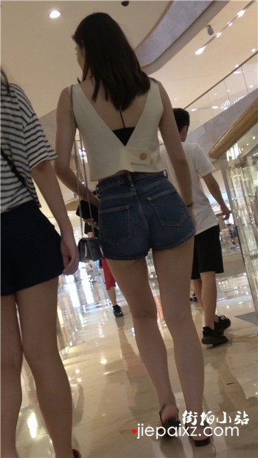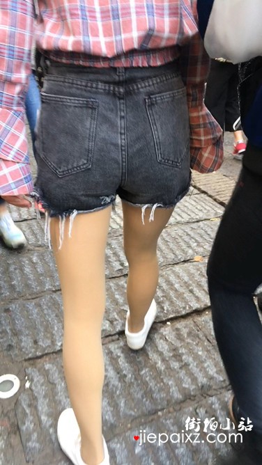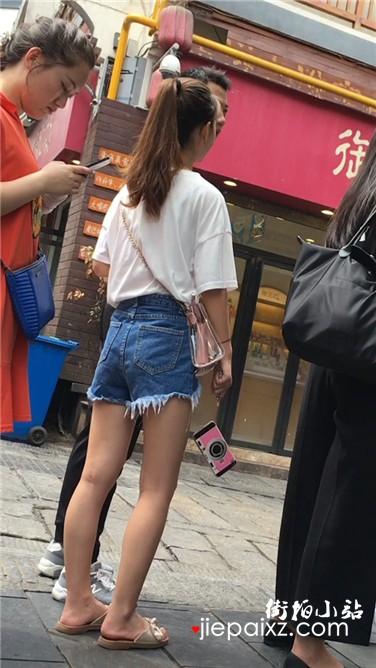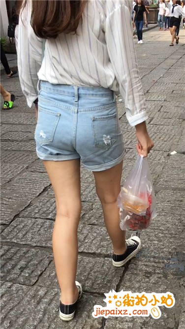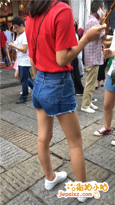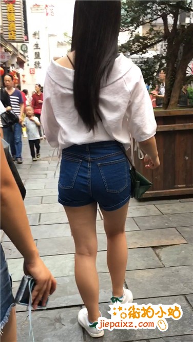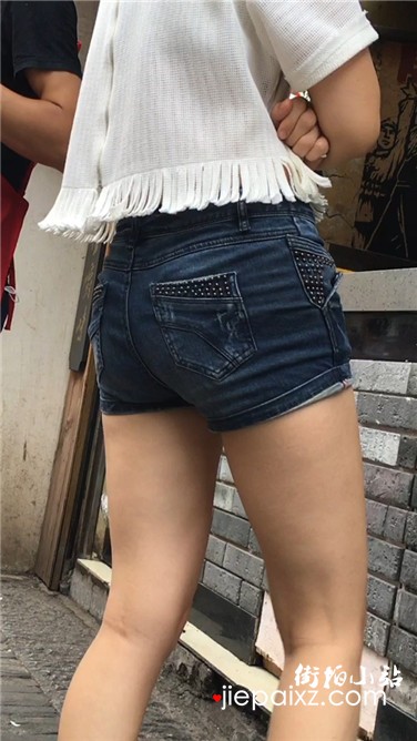 街拍高腰牛仔热裤丰腴苹果臀小美女