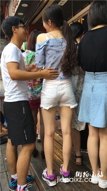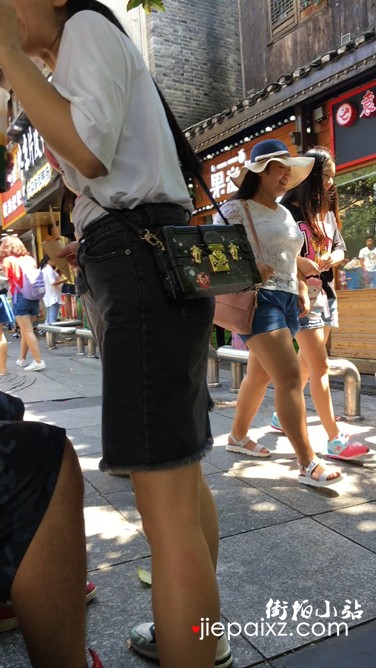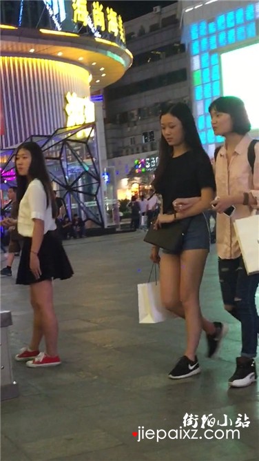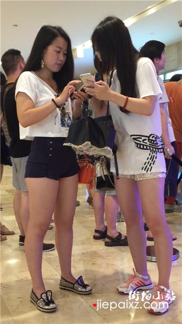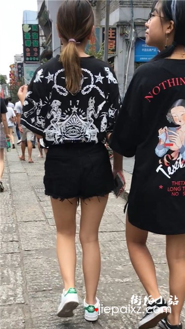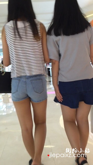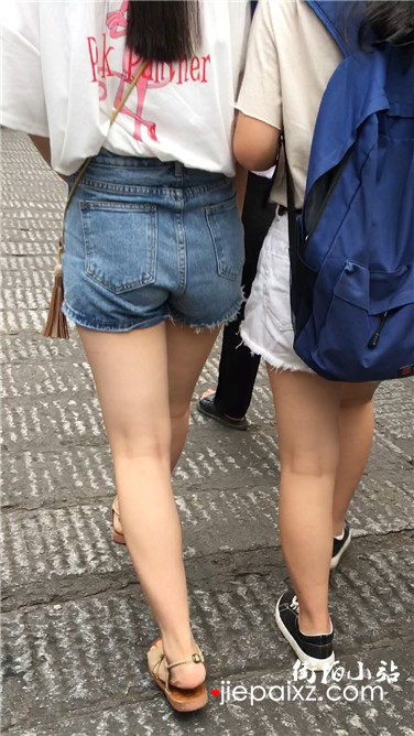 街拍热裤苹果臀美腿美女约姐妹逛街