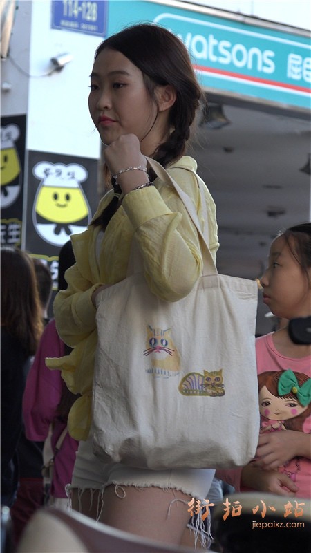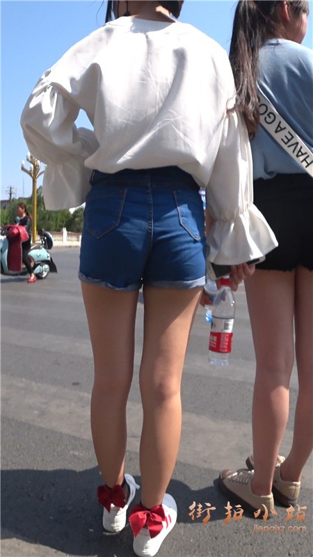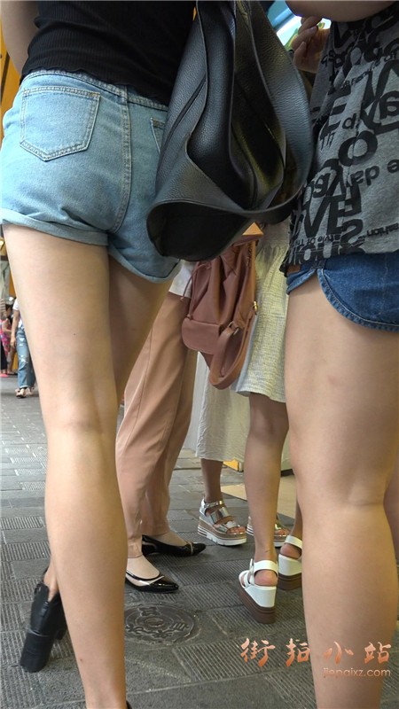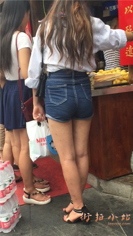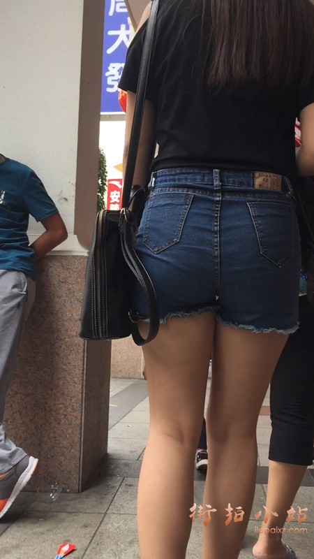白T恤牛仔热裤丰臀街拍美臀少妇