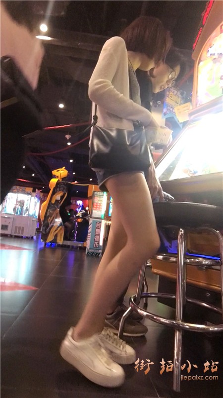 电玩城的白衣白鞋长腿街拍美女姐姐