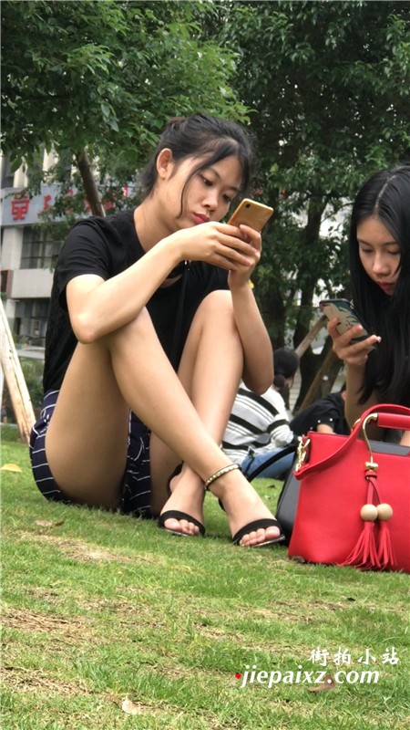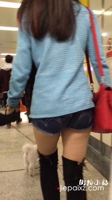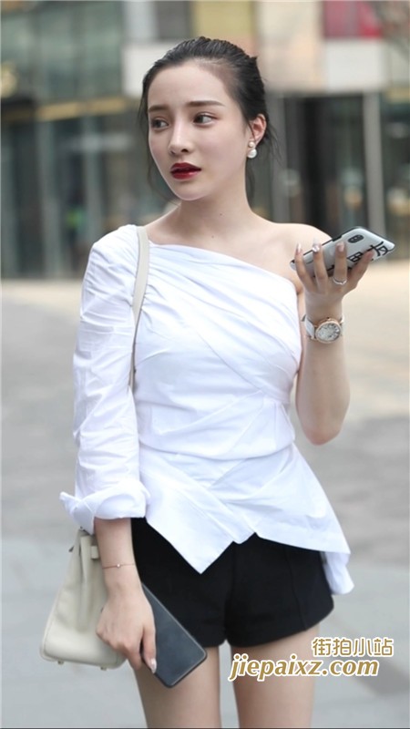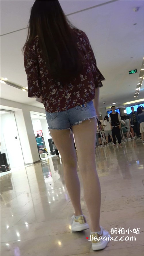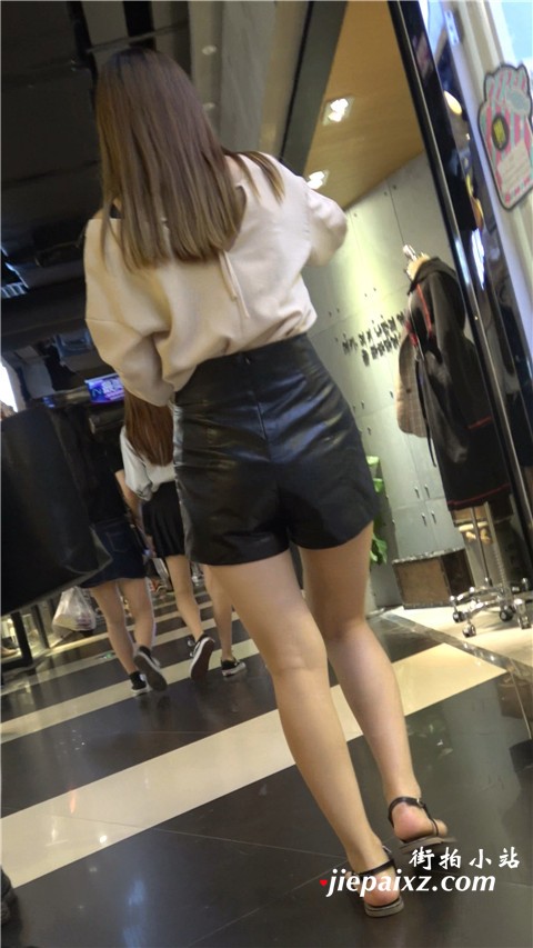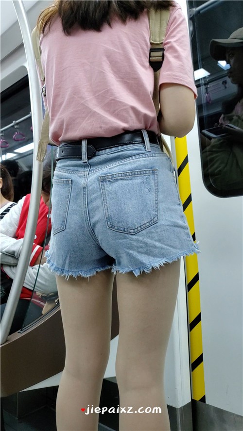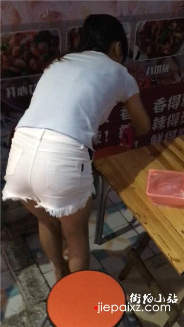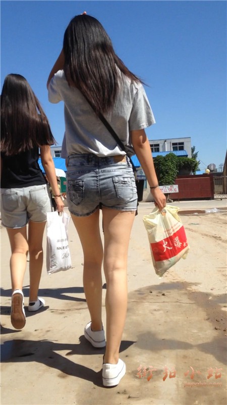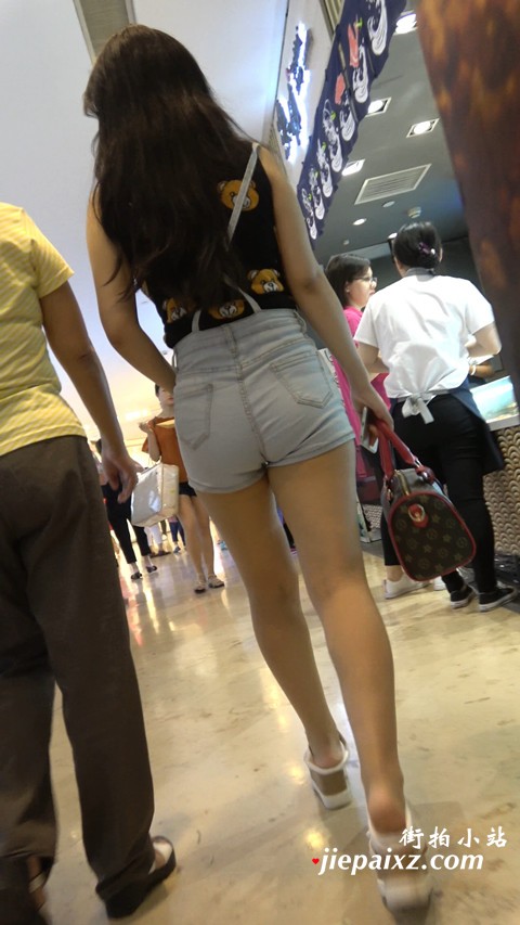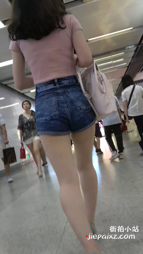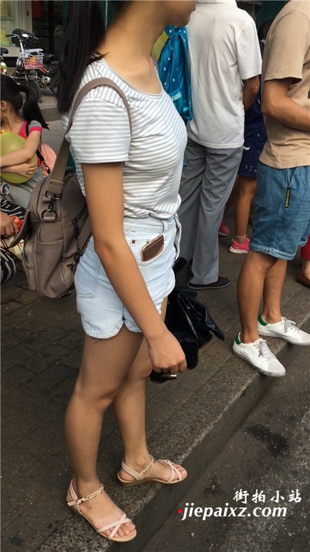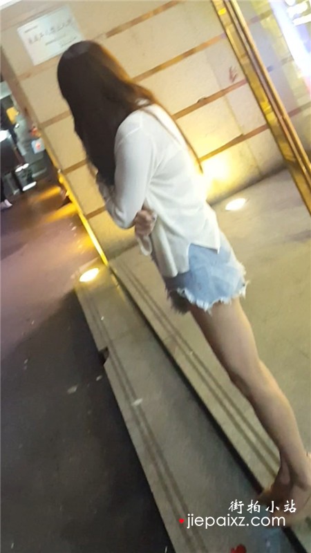 街拍白短热裤粉嫩美臀性感美女姐姐