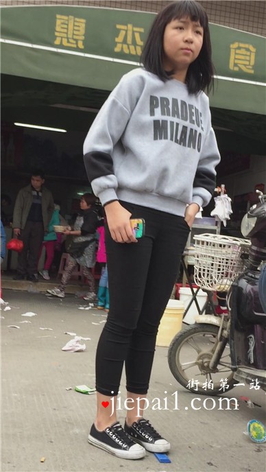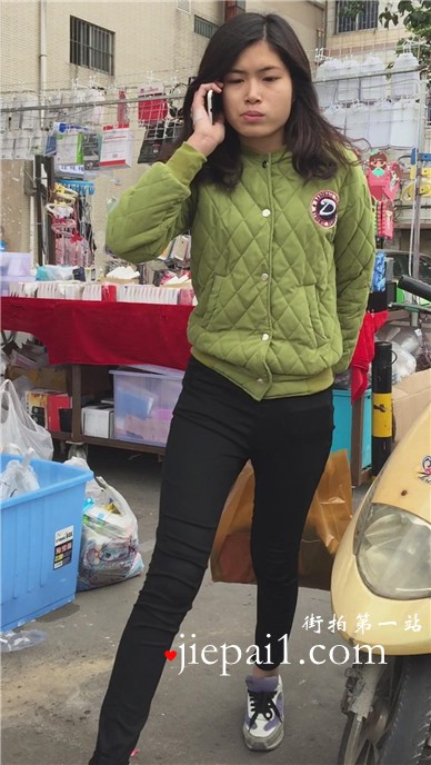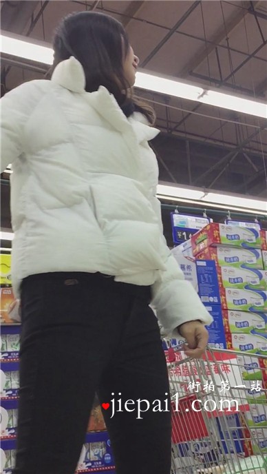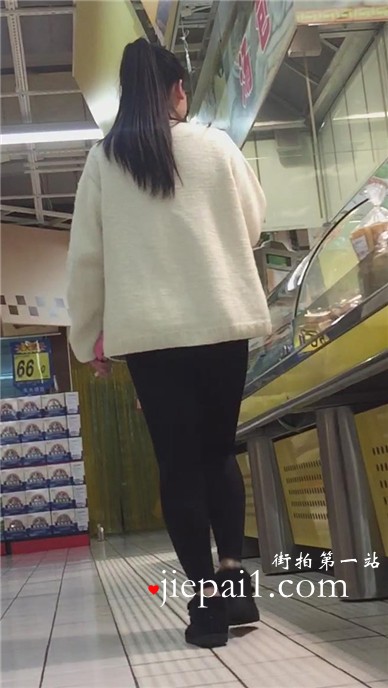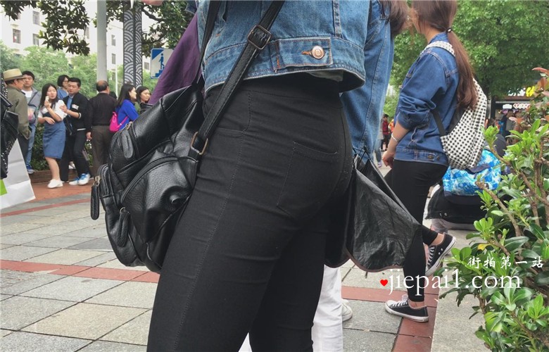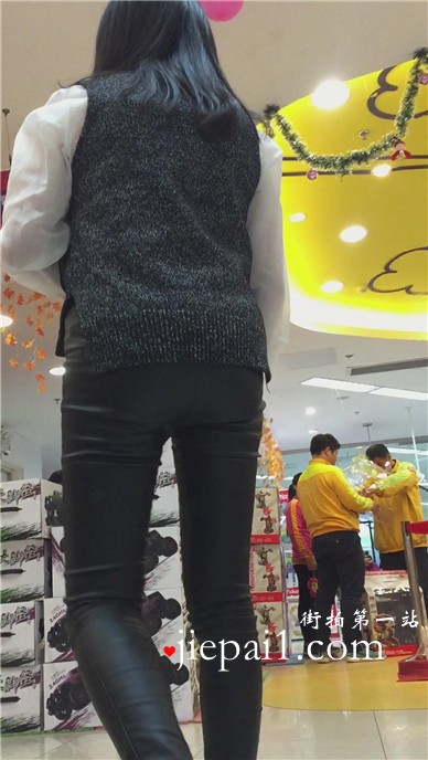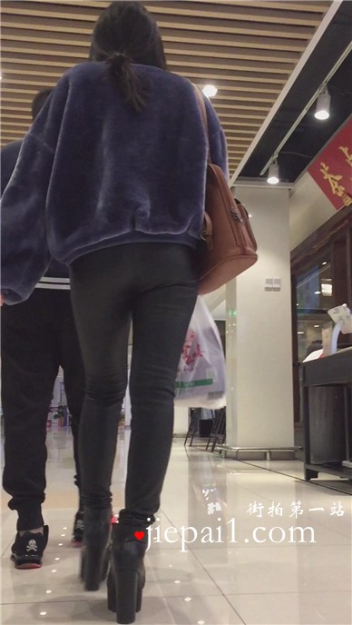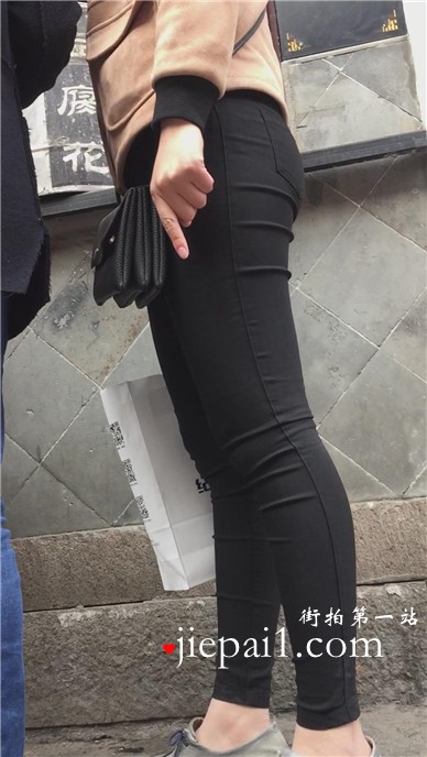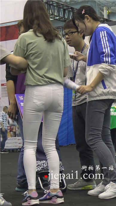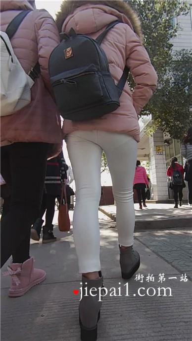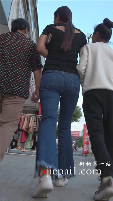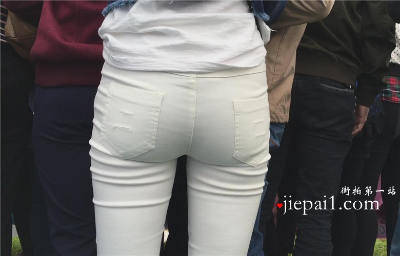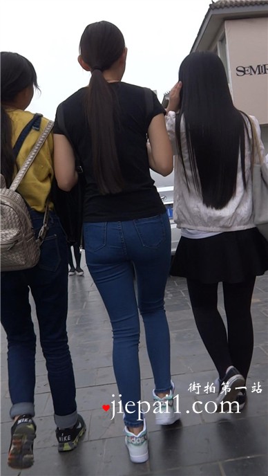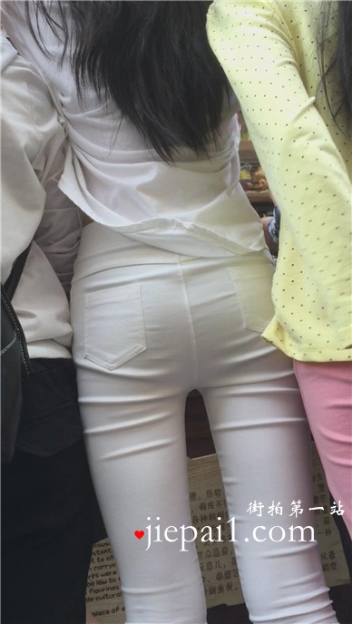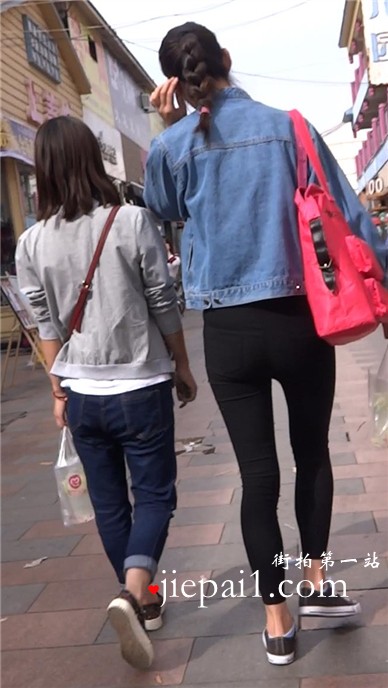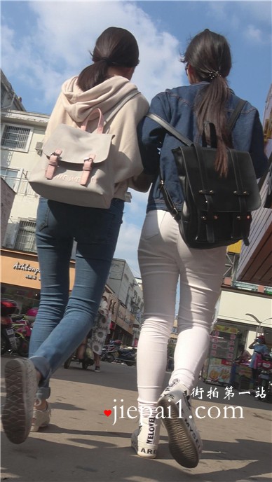 紧身白裤圆臀小妹跟闺蜜逛街。