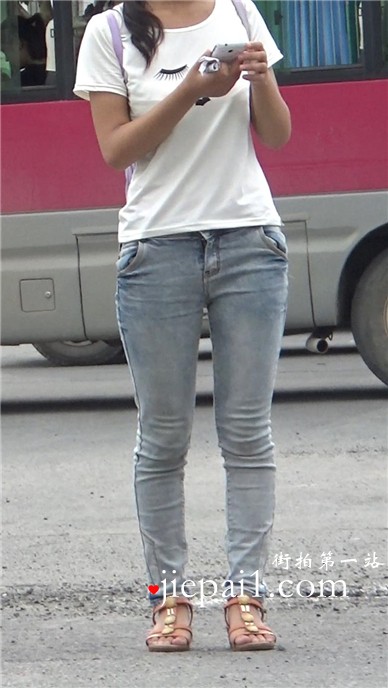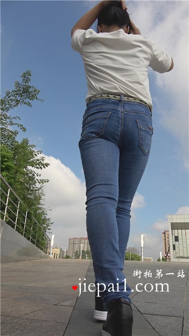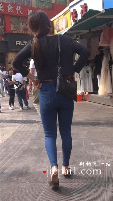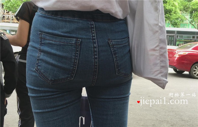 超级圆臀丰满臀部的蓝色牛仔裤妹子