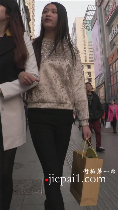 街拍紧身蓝色牛仔裤妹子跟丰满闺蜜