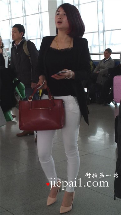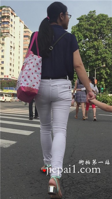 街拍粉高跟长腿性感蓝牛美女姐姐