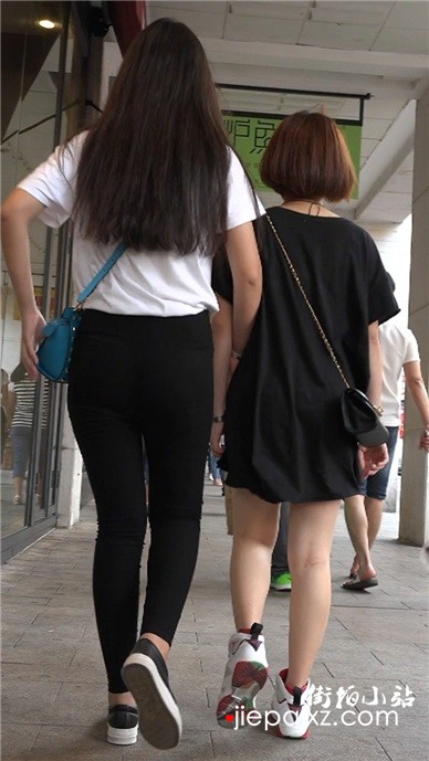 紧身黑裤马尾辫小妹跟闺蜜