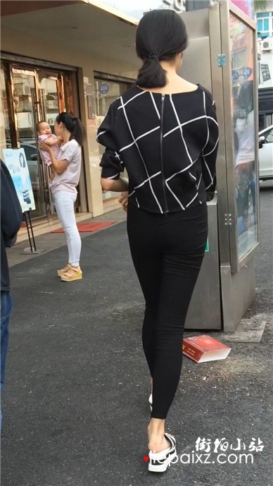 街拍紧身黑裤丰臀美女