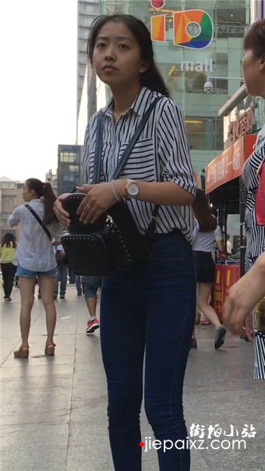 蓝色紧身蜜桃臀牛仔裤美眉