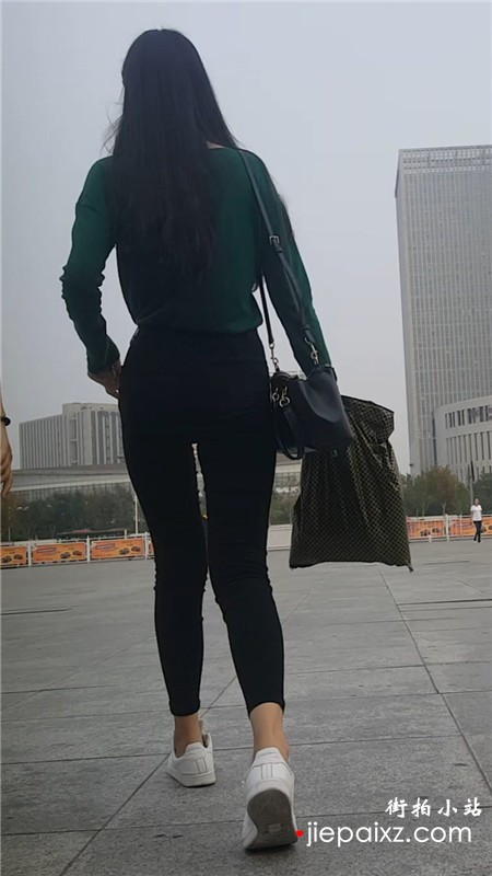 4k-黑色紧身裤运动鞋街拍美臀