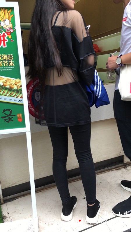 街拍超紧弹力裤黑色系美眉