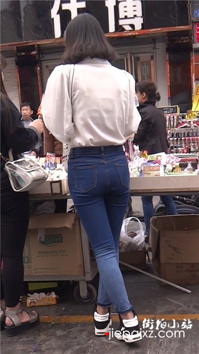 街拍超紧身蓝色牛仔裤美眉