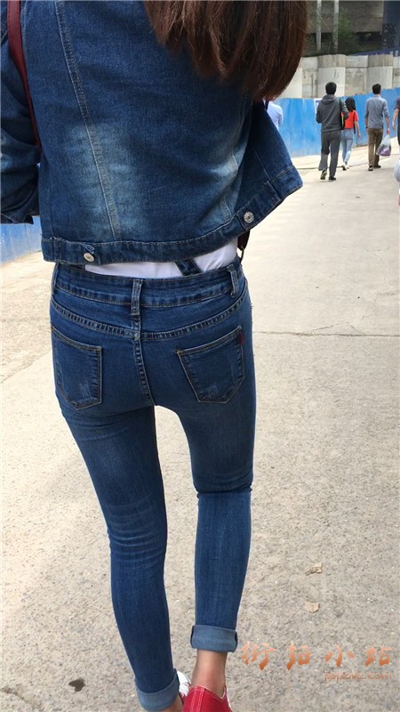 4k-街拍紧身蓝牛黄色毛衣小美女