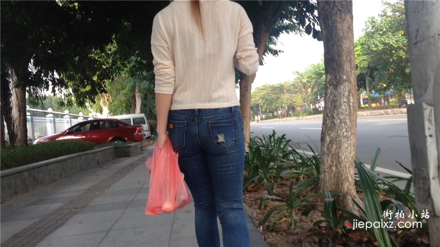 街拍紧身牛仔裤美女小姐姐