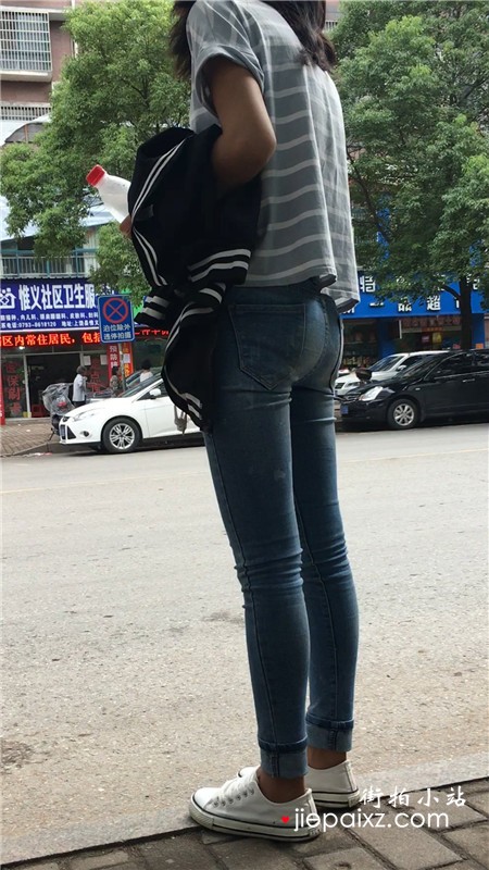 极品紧身牛仔裤街拍圆臀美眉