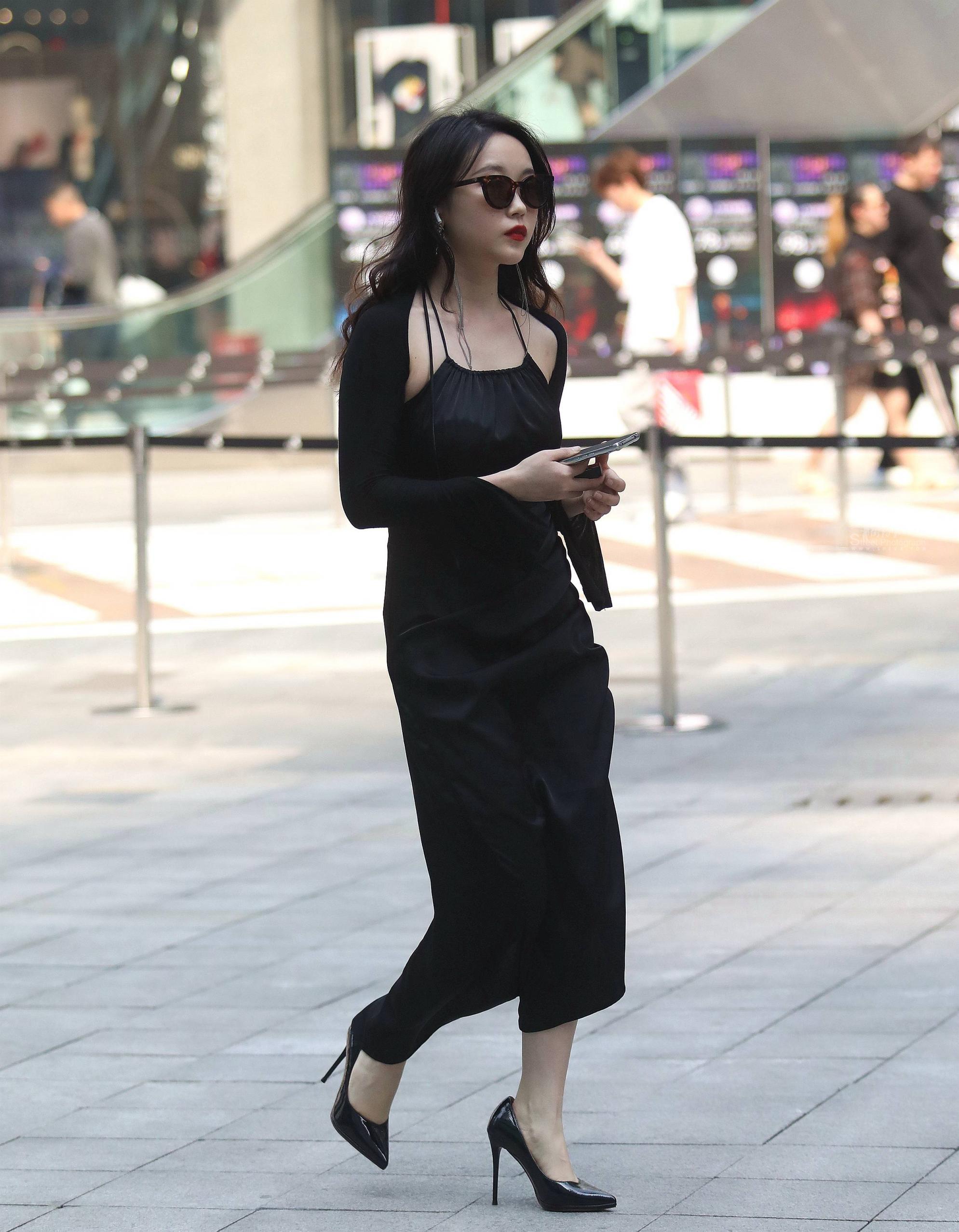 黑裙细街拍高跟美shaofu