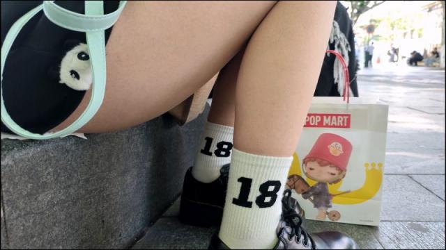 【独家原创】少女黑绑腿袜显露白肉腿