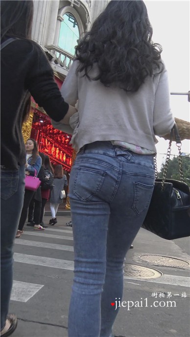 紧身蓝色牛仔裤美臀清纯学生妹
