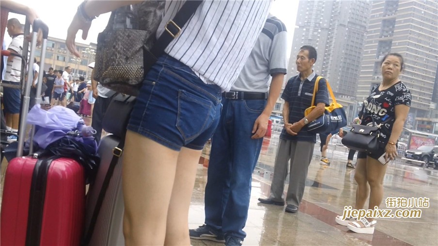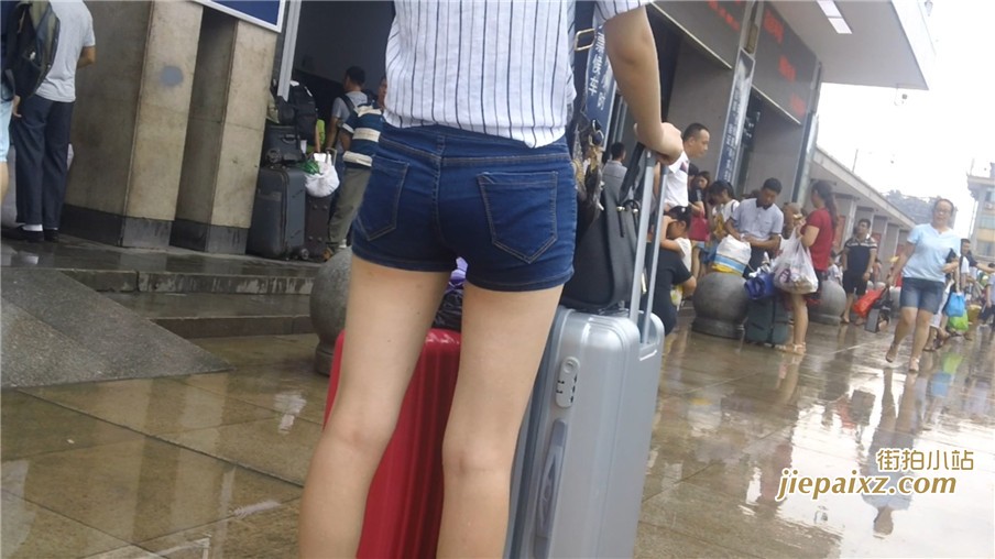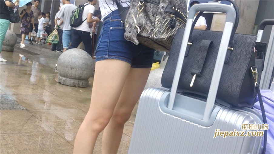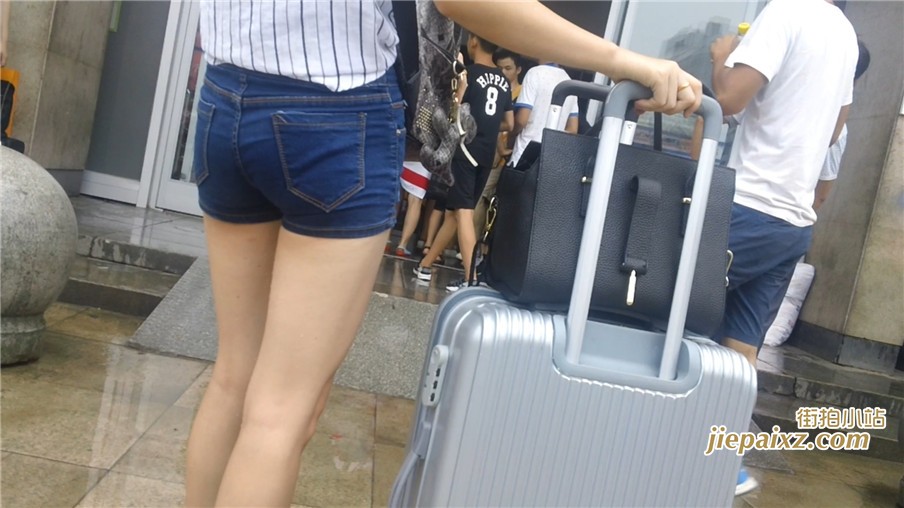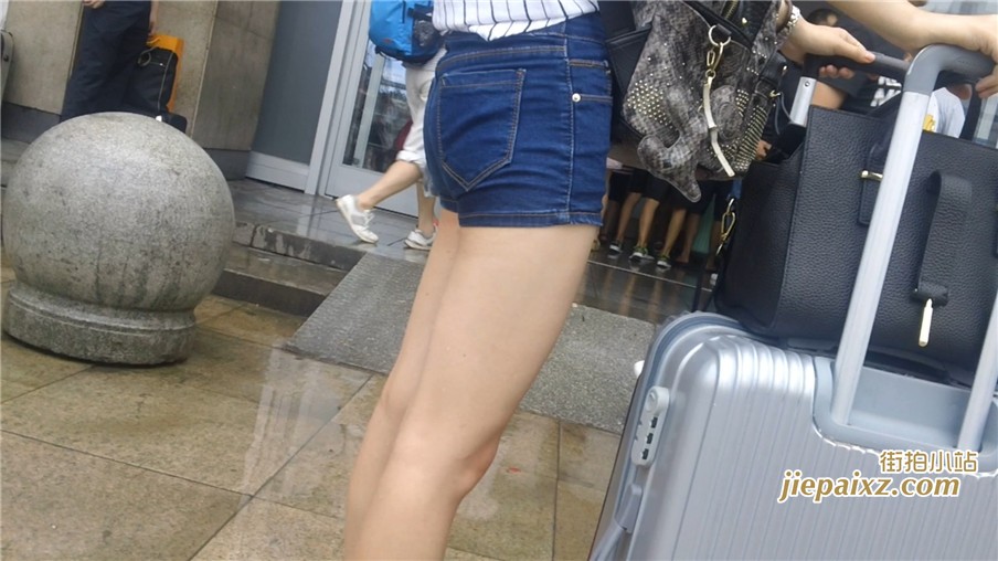牛仔热裤白皙嫩腿妹子