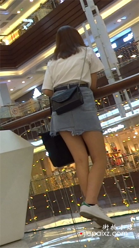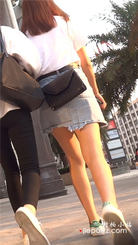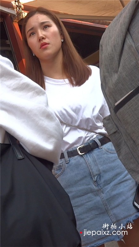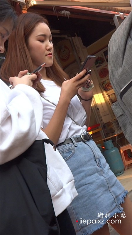 街拍白T恤牛仔短裙小清纯美眉