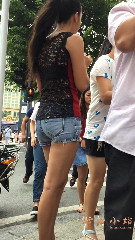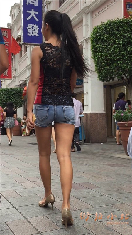 蕾丝衣超性感短热裤街拍美腿高跟美女