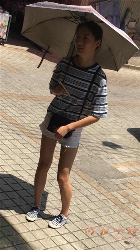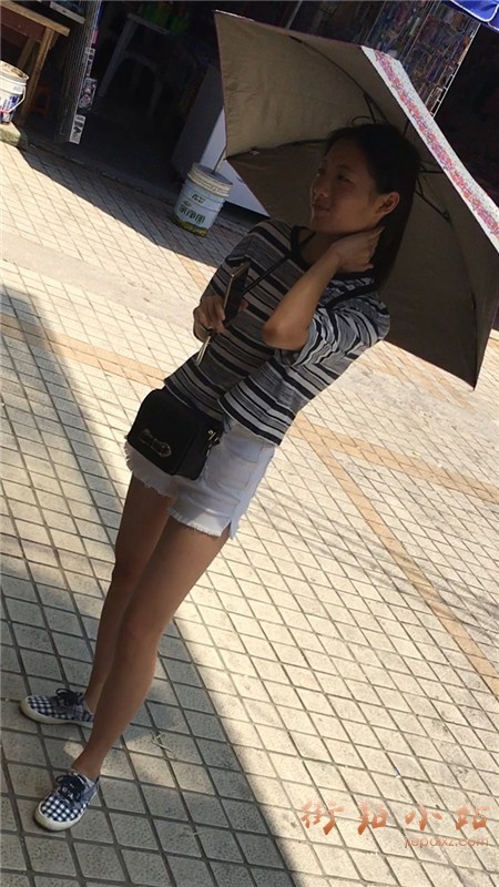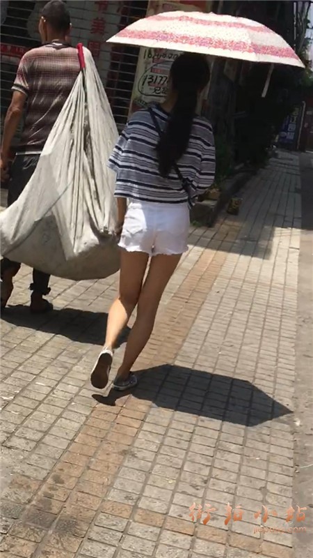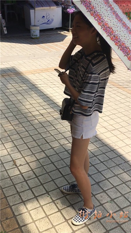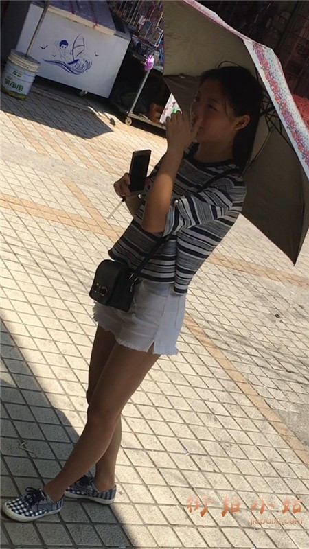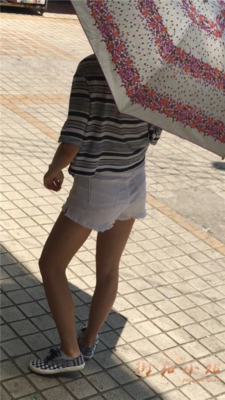 白短热裤T恤衫小美女