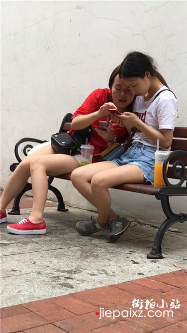 在研究如何自拍、P图修图发朋友圈的两姐妹