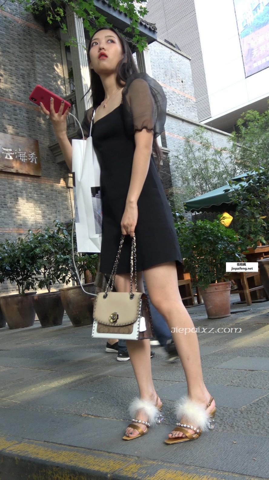 4K - 性感黑色连衣裙长腿街拍高跟街拍美女 [1.00 GB/MP4]