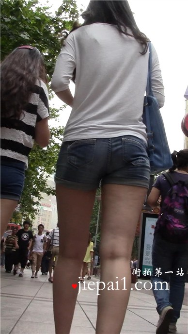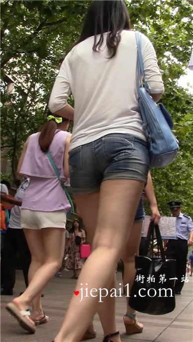 白T恤牛仔热裤豹纹增高凉鞋美女